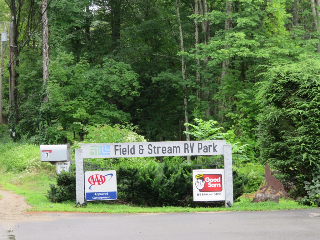 We finally arrived at our RV park in Nashua, NH – Field and Stream RV Park.