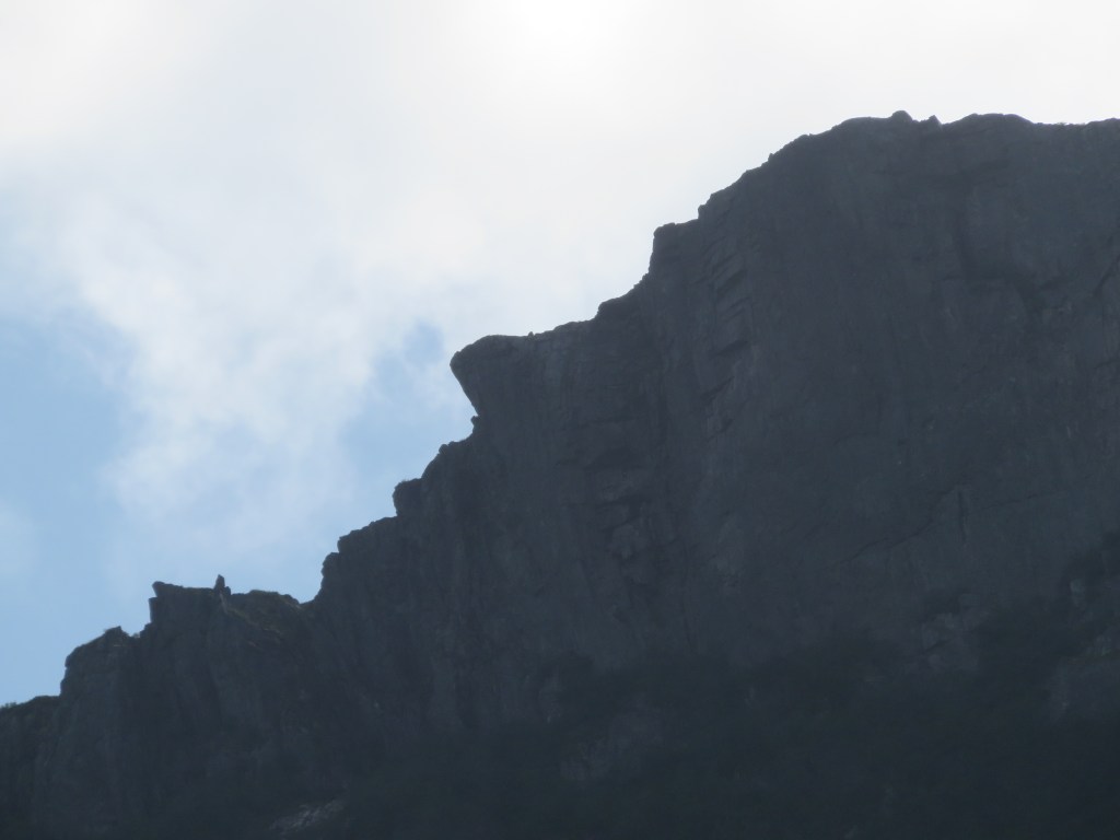 Bear Piss Falls (no I am NOT making up that name). The falls are hard to see in this photo because you might mistake them for a cloud. They are at the top of the cliff.
