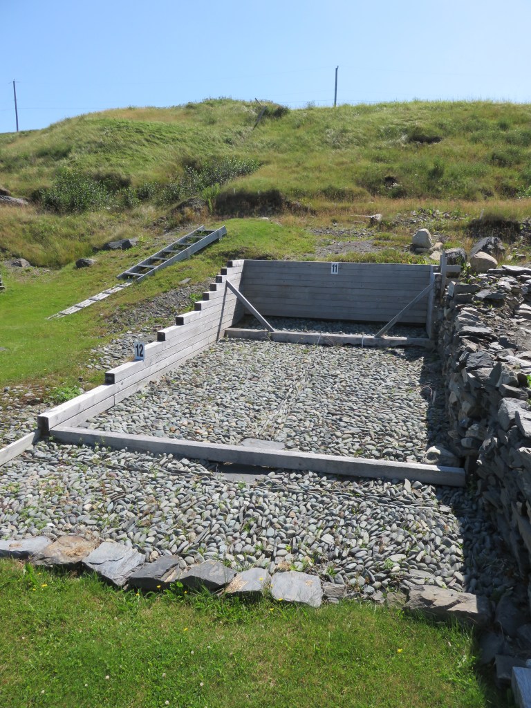 Here is a privy (outhouse). It had an outlet to the sea. The tides would come in twice a day and they would fill up the privy and essentially flush it. The Newfoundlanders (aka Newfies) like to say they had the first flushing toilet in North America.