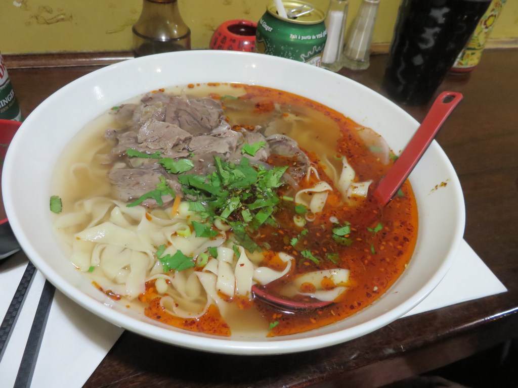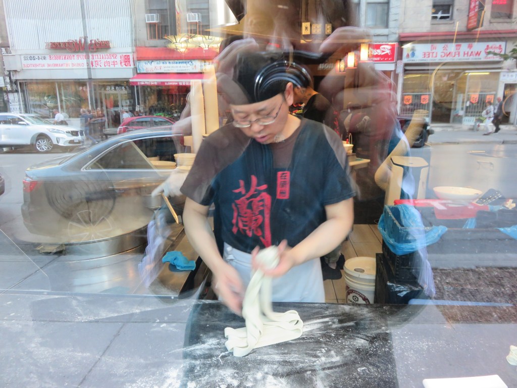 We found a parking spot right away (quite amazing) and went to Nouilles de Lan Zhou. It is a tiny little Chinese noodle place. They have a man out front whose sole job is to make noodles and smile at the tourists. He does an excellent job of both.