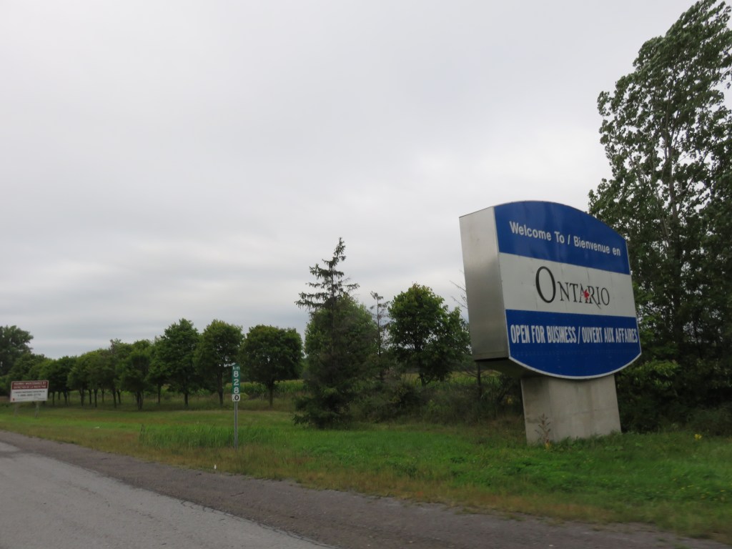 From the perspective of a blog reader it would be tedious to read about all the silly things that make the 4 of us laugh so I think I shall wait for several days and then write a blog entry that covers the highlights. So…I will talk to you all soon. In the meantime, here is the Ontario province sign that I (barely) managed to get a phot of as we sped by 😊